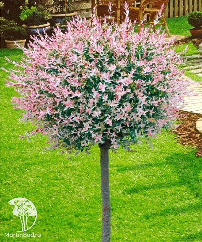 Самый популярный сорт с розово-бело-зелеными листьями. Идеален для штамбовой и кустовой форм.