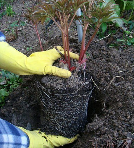 Время посадки: Древовидные пионы с открытой корневой системой высаживаются до пробуждения почек, сразу после покупки. Контейнерные пионы можно высаживать в любое время года, хотя осенние посадки предпочтительнее.